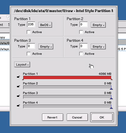Setup your partition how you want, I find it easier to go with 100% BeOS: